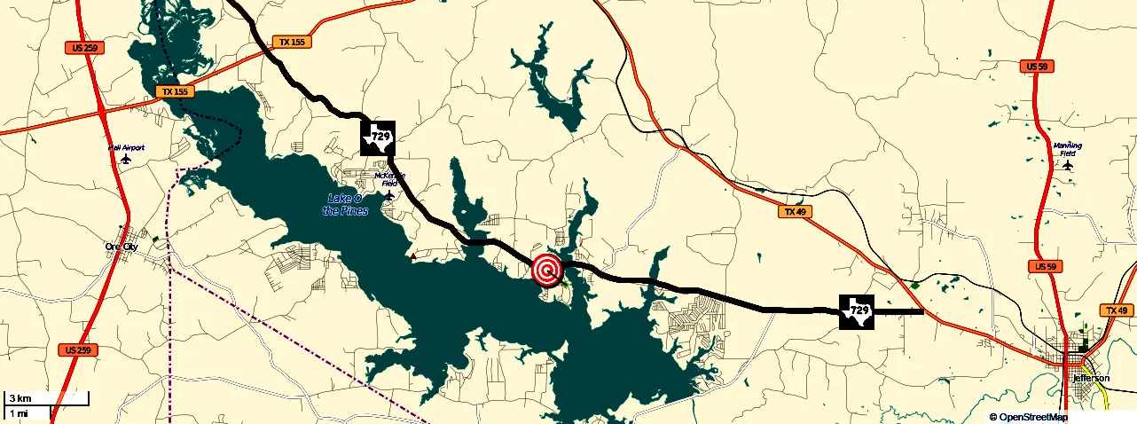 But whatever you do, trust your map and don't turn just because you see a sign saying "Lake O' the Pines." There are many public shores to the lake and turning when you shouldn't can take you 30 minutes out of your way.